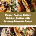 Keywords: chicken fajitas, skillet fajitas, creamy jalapeño verde sauce, Tex-Mex recipe, easy chicken dinner, sautéed peppers, spicy salsa verde sauce