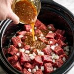 - For extra depth of flavor, you can brown the beef cubes in olive oil in a skillet before adding them to the slow cooker, but this step is optional.