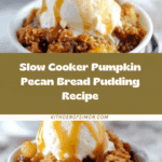 This Slow Cooker Pumpkin Pecan Bread Pudding is a comforting and delicious dessert perfect for fall. It combines cubes of day-old bread with warm spices, pumpkin puree, and toasted pecans, slow-cooked to a custardy finish. Topped with vanilla ice cream and caramel sauce, it’s an indulgent treat that requires minimal effort.