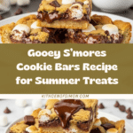 These S’mores Cookie Bars combine the classic flavors of graham crackers, chocolate, and marshmallows into a deliciously chewy bar. Layered on a graham cracker crust and baked with mini marshmallows and semi-sweet chocolate chips, then topped with melting Hershey’s chocolate bars, they create a gooey, nostalgic treat that’s perfect for parties, dessert tables, or a cozy night in.
