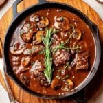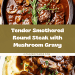 This Smothered Round Steak recipe features tender, slow-braised beef round steak cooked with mushrooms, onions, and a flavorful herb-infused gravy. The steak is first browned to develop deep flavor, then baked low and slow in the oven with beef broth and seasonings until melt-in-your-mouth tender. The rich gravy is thickened with a cornstarch slurry and perfect served over mashed potatoes, noodles, or rice for an irresistible, hearty meal.