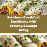 Southern Breakfast Enchiladas with rich sausage gravy combine classic breakfast flavors wrapped in warm tortillas. This hearty dish is perfect for a cozy weekend brunch or a special morning meal that everyone will love.