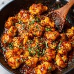 Spicy Korean Chicken with Cheesy Topping is a vibrant, flavorful dish featuring tender boneless chicken thighs marinated in a fiery gochujang and gochugaru sauce, then simmered to perfection and finished with a bubbly, golden layer of melted mozzarella cheese. This dish combines deep Korean flavors with a comforting cheesy finish, perfect for those craving a spicy, savory meal with a gooey twist.