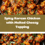 Spicy Korean Chicken with Cheesy Topping is a vibrant and flavorful dish that combines the heat of Korean chili paste and flakes with the comforting richness of melted mozzarella. This recipe is perfect for those craving a bold, spicy meal with a deliciously gooey finish.