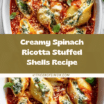 Spinach and ricotta stuffed shells make a comforting and delicious meal that’s perfect for any night of the week. Soft pasta shells are filled with a creamy mixture of ricotta, fresh spinach, and Parmesan, then baked with marinara sauce and melted mozzarella. This dish is both satisfying and easy to prepare.