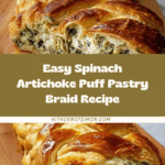 This Spinach Artichoke Puff Pastry Braid is a deliciously flaky appetizer or snack packed with creamy, cheesy goodness and savory vegetables. Perfect for parties or a cozy night in, it combines the classic flavors of spinach and artichoke in a beautifully braided pastry.