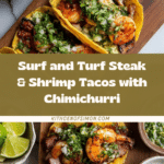 Steak and shrimp tacos with chimichurri bring bold, vibrant flavors to your taco night. Combining tender skirt steak, spicy shrimp, and a fresh herb sauce, these tacos are a delicious way to impress family and friends.