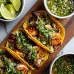 Keywords: steak tacos, shrimp tacos, chimichurri, grilled tacos, skirt steak, Mexican tacos, seafood tacos