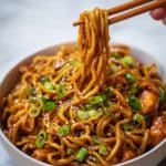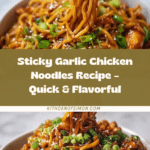 This Sticky Garlic Chicken Noodles recipe features tender chicken coated in a sweet and savory garlic-honey soy sauce, tossed with perfectly cooked noodles, and garnished with green onions and sesame seeds for a delightful Asian-inspired meal that’s quick and easy to prepare.