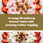 This Strawberry Dessert Salad with Toffee is a delightful combination of creamy, fruity, and crunchy textures. It brings together whipped cream cheese, fresh strawberries, and a buttery toffee pretzel topping for a crowd-pleasing treat that’s perfect for gatherings or a simple sweet indulgence.