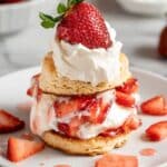 - Assemble the shortcakes: Slice each homemade biscuit in half horizontally. Layer the bottom half of the biscuit with a generous spoonful of the macerated strawberries, followed by a dollop of whipped cream. Place the biscuit top on and add additional strawberries and whipped cream on top as desired. Serve immediately for best texture and flavor.