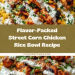 This Street Corn Chicken Rice Bowl combines smoky, flavorful chicken with creamy, tangy street corn for a satisfying and vibrant meal. Perfect for a quick weeknight dinner or a casual gathering, it brings the taste of Mexican street food right to your table.