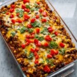 - Rest and Garnish: Remove from the oven and let rest for at least 10 minutes to set the casserole and meld flavors. Garnish with fresh cilantro and serve hot with optional toppings like sour cream, avocado, and jalapeños.