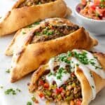Keywords: Hawawshi, Egyptian bread pockets, stuffed pita, ground beef recipe, baked pita, Middle Eastern cuisine, spiced meat filling, tahini, healthy pita meal
