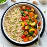 This vibrant and healthy Zucchini Stir Fry With Tofu is a delicious vegan dish featuring tender tofu, fresh vegetables, and a savory ginger-tamari sauce. Perfect for a quick weeknight meal, it combines zucchini, carrots, and bell pepper sautéed to perfection, tossed in a flavorful homemade sauce with toasted sesame oil and garlic.